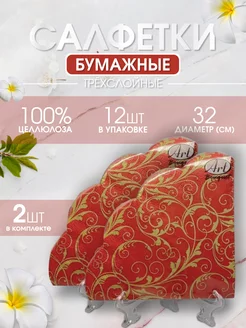 Салфетки трехслойные Очарование на красном, 2 уп по 12 шт