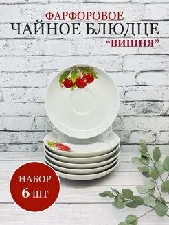 Чайные блюдца 140мм "Вишня" - 6 штук