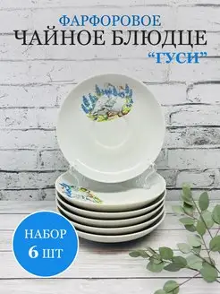 Чайные блюдца 140мм "Гуси" - 6 штук
