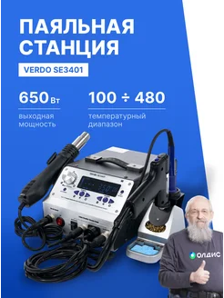 SE3401 Станция паяльная термофен+паяльник+оловоотсос 650 Вт