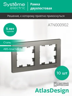 10 шт. Рамка Systeme Atlas Design, 2 поста (Сталь)
