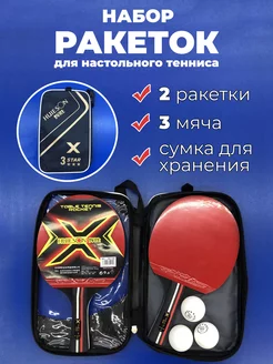 Ракетки для настольного тенниса с чехлом и шариками (X3 red)