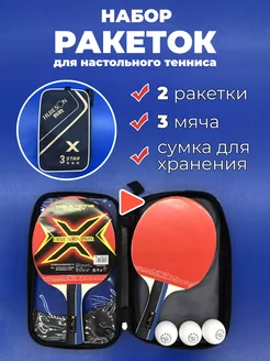 Ракетки для настольного тенниса с чехлом и шариками (X3 bl)
