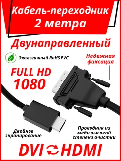 Провод 2м HDMI-DVI для подключения к ПК монитору ТВ