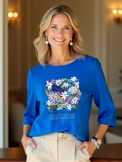 Лонгслив трикотажный с принтом и рукавом 3 4