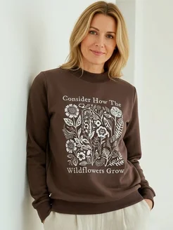 Кофта оверсайз трикотажная с принтом без начёса стильная