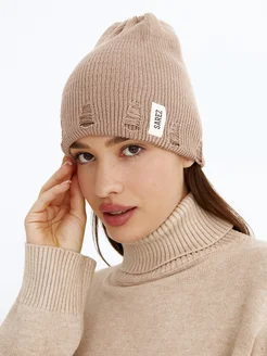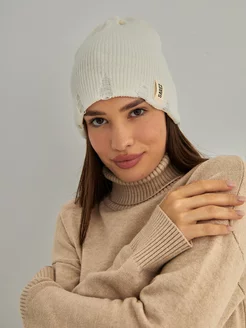 Осенняя шапка бини рваная