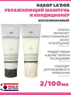 Шампунь и кондиционер бессиликоновые увлажняющие Ладор