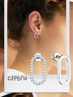 Серьги серебро с фианитами ассиметрия