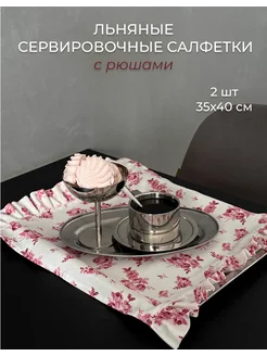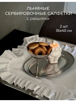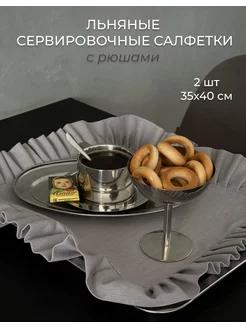 Набор льняных сервировочных салфеток с рюшами 2 шт