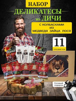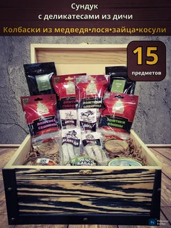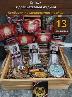 Вкусный ящик с деликатесами дичи и колбасками медведя