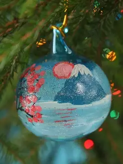 Шар новогодний с подвесом "Сакура" 8 см, ручная роспись
