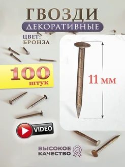 Декоративные гвозди мебельные бронза, винтаж - 100 штук