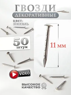 Декоративные гвоздики для поделок, никель, ретро - 50 штук