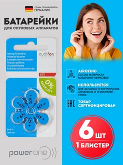 Батарейки для слуховых аппаратов тип 675, 6шт