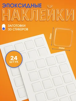 Стикеры наклейки эпоксидные прозрачные 3D 24 шт 3 х 3 см