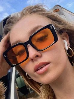 Солнцезащитные оранжевые желтые очки женские квадратные