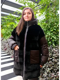 Куртка удлинённая меховая из эко норки двухсторонняя