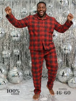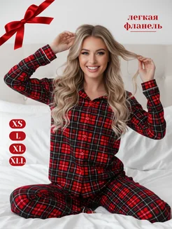 Пижама со штанами и рубашкой хлопковая новогодняя фланель