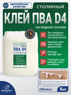 Клей ПВА Столярный D4 для дерева строительный, 5 кг