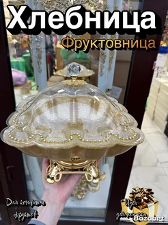Хлебница с крышкой в золоте Ваза для конфет и фруктов