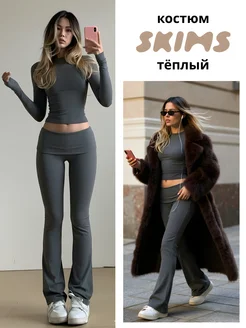 Спортивный костюм теплый с начесом со штанами и лонгсливом