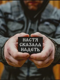 Шеврон на липучке с белым текстом "Настя сказала надеть"