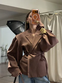 Пиджак коричневый оверсайз жакет вечерний наряд