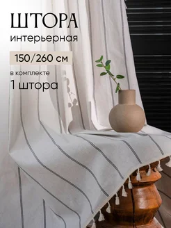 Штора в комнату лен 150*260 см (1шт) кружевная