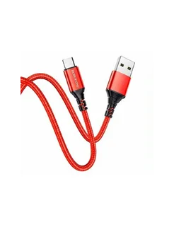 USB кабель bx54 type-c, 1м, 3a, нейлон (красный)