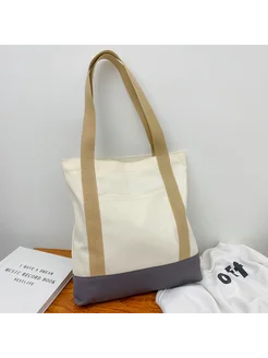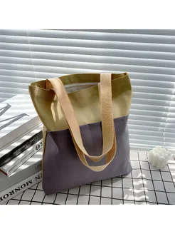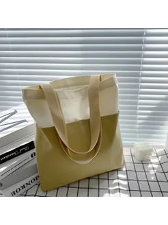 сумка шоппер с карманами на молнии хаки с коричневым низом