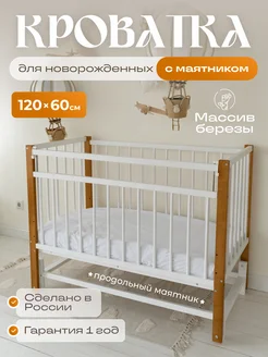 Кроватка для новорожденного 120 60 с маятником и матрасом