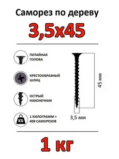 Саморез по дереву (шуруп) черный 3,5х45 мм 1кг