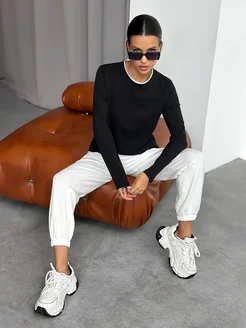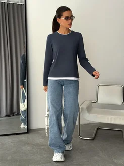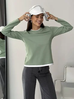 Лонгслив женский двойной оверсайз спортивный хлопковый