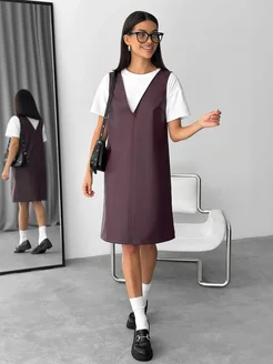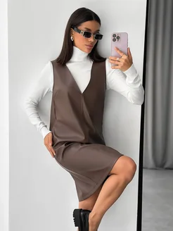 Сарафан женский офисный кожаный, длинный, стильный, домашний