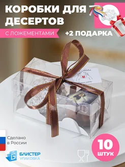 Коробка для десертов с прозрачной крышкой упаковка на 4 шт