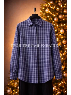 Рубашка теплая в клетку на завязках приталенная на новый год