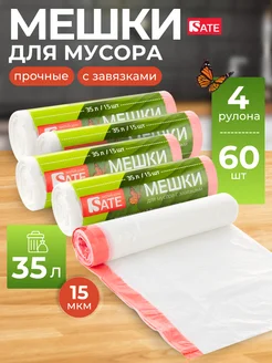 Мешки для мусора 35 л с завязками прочные плотные набор