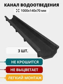 Полимерпесчаный лоток водоотведения, 100х70мм, 3 шт, черный