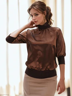 Водолазка КОМБИ с напуском, атлас и трикотаж