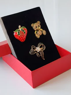 Подарочный набор брошей клубника, бантик, медвежонок