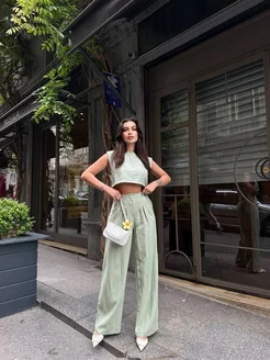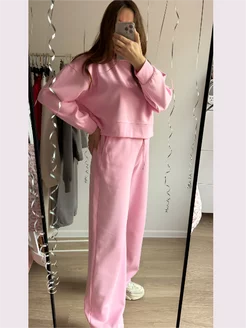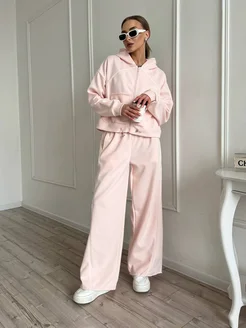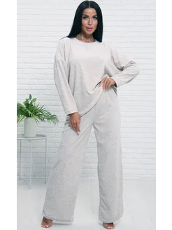 Костюм махровый теплый со штанами оверсайз в рубчик