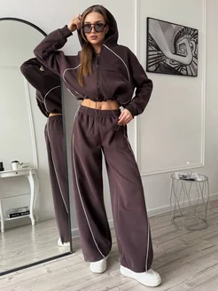 Спортивный костюм оверсайз на молнии с капюшоном Корея