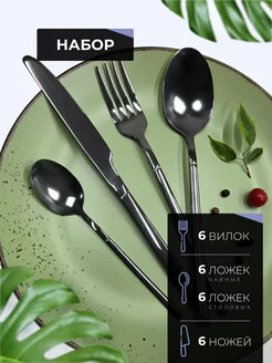 Набор столовых приборов 24 предмета черный с тонкой ножкой