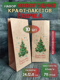 Крафт пакеты новогодние подарочные "Счастливого Нового года"