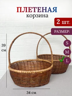 Корзина плетеная с ручкой большая из лозы - 2 шт