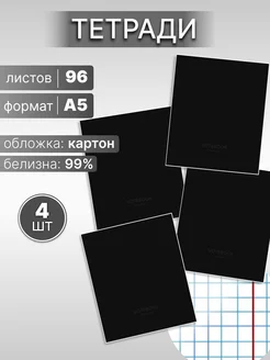 Тетрадь 96 листов в клетку черная набор 4 шт