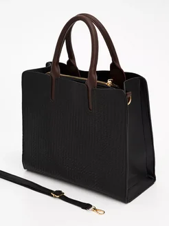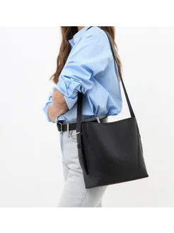 Сумка через плечо средняя черная тоут с кармашком и молнией