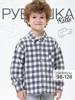 Рубашка в клетку теплая модная оверсайз с капюшоном