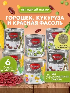 Горошек Кукуруза Фасоль красная без сахара 425 мл 6 банок